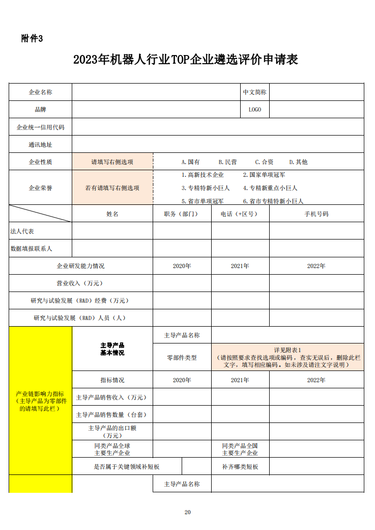 附件:【2023年机器人行业TOP企业遴选评价申报表】